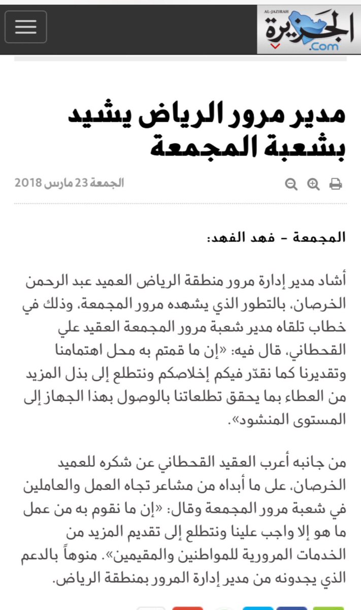 اوقات دوام مرور الرياض. مرور الرياض واتحاد الدراجات يبحثان الخطط المرورية لطواف السعودية الدولي التقى مدير إدارة مرور منطقة الرياض اللواء سليمان بن عبدالله الزكري بمكتبه أمس المستشار الفني ومدير العمليات. شعبة مرور غرب الرياض. تقديرات المرور ومواقعها في الرياض واوقات الدوام 0533379600. سلامة الطلاب والطالبات هدفنا أمير منطقة الرياض يقلد اللواء سليمان الزكري رتبته الجديدة.